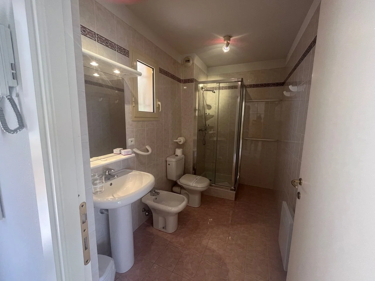 Salle de bains avec fenêtre et douche