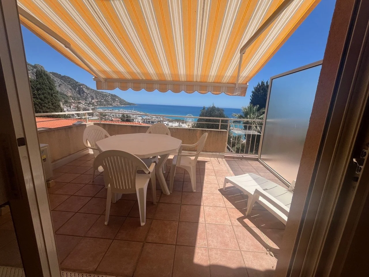 Ampio terrazzo abitabile di 15 m² con esposizione a sud e vista mare panoramica